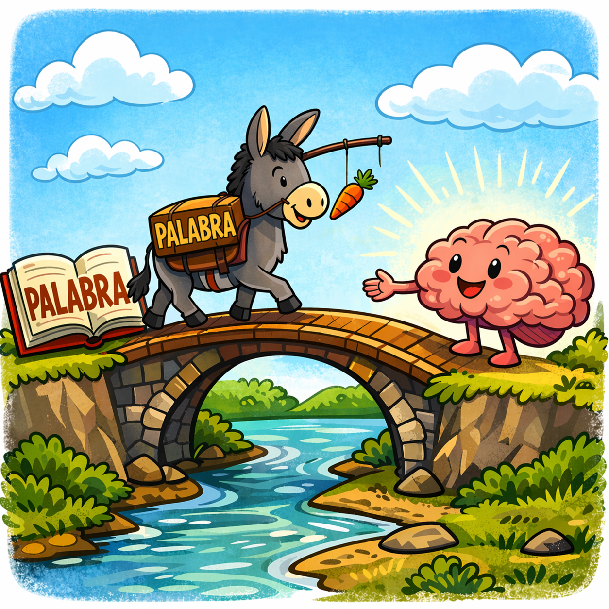 Imagina un burro cruzando un puente siguiendo una zanahoria.